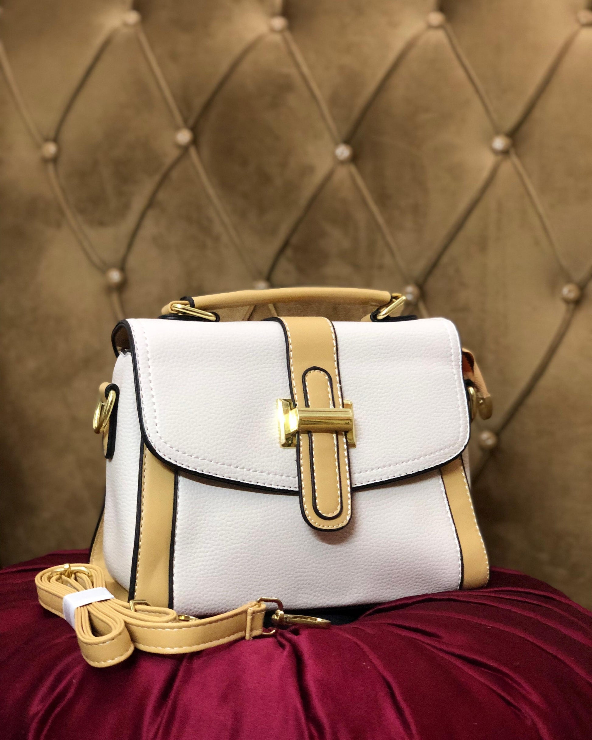 Introducing the White & Beige Elegance Handbag by Lace & Luxe—a perfect blend of sophistication and functionality. Crafted with premium faux leather, this handbag features stunning gold-tone hardware and a versatile design that seamlessly transitions from a handbag to a crossbody style. Whether you're heading to a brunch or a business meeting, this bag adds a refined touch to every outfit.